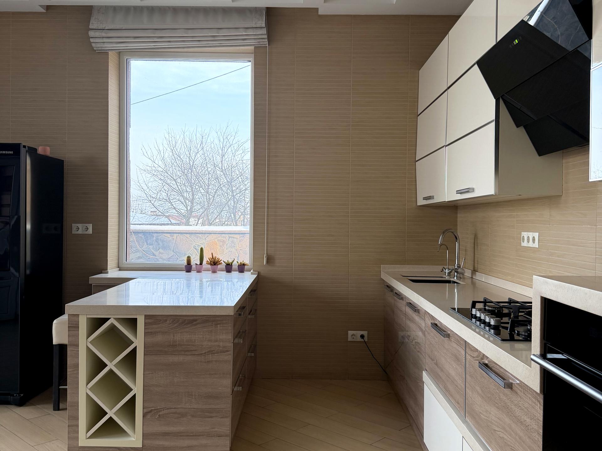Пропонується до продажу просторий та продуманий будинок 2015 року будівництва, розташований на земельній ділянці 10 соток із підключеними міськими комунікаціями. Потужність електроенергії — 10 кВт.