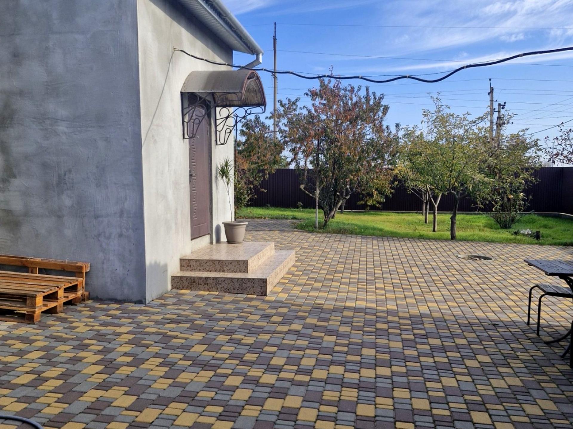 Двор выложен красивой плиткой. Сам дом внешне тоже ухожен. Только нужно покрасить.