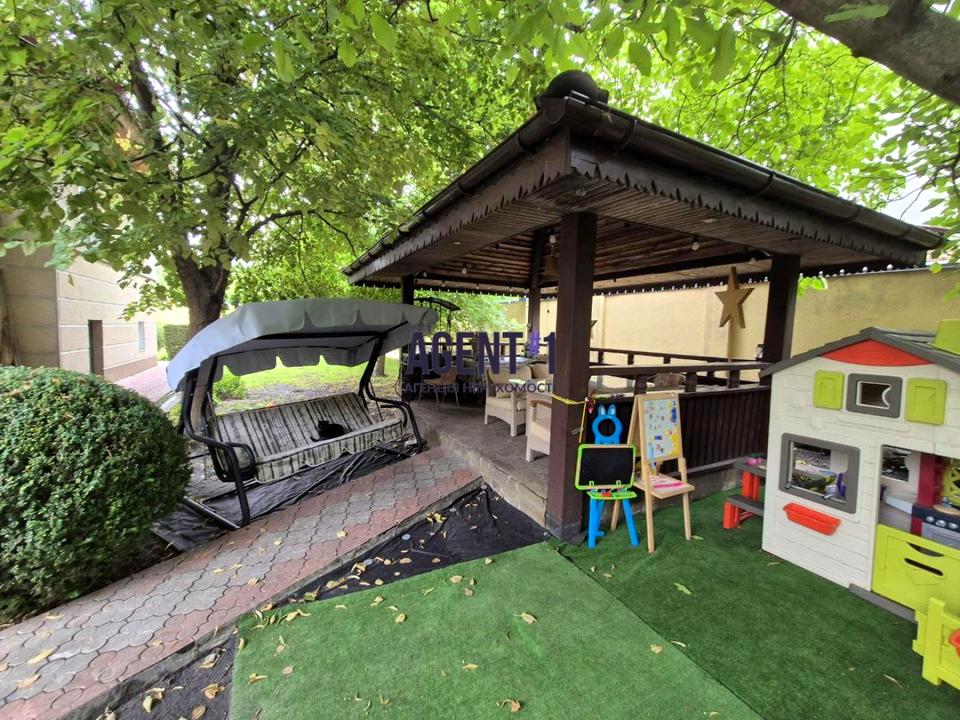 Територія дуже зелена, є бесідка з зоною барбекю, накриття для двох машин, вольєр. Також є гараж в будинку на одне авто.