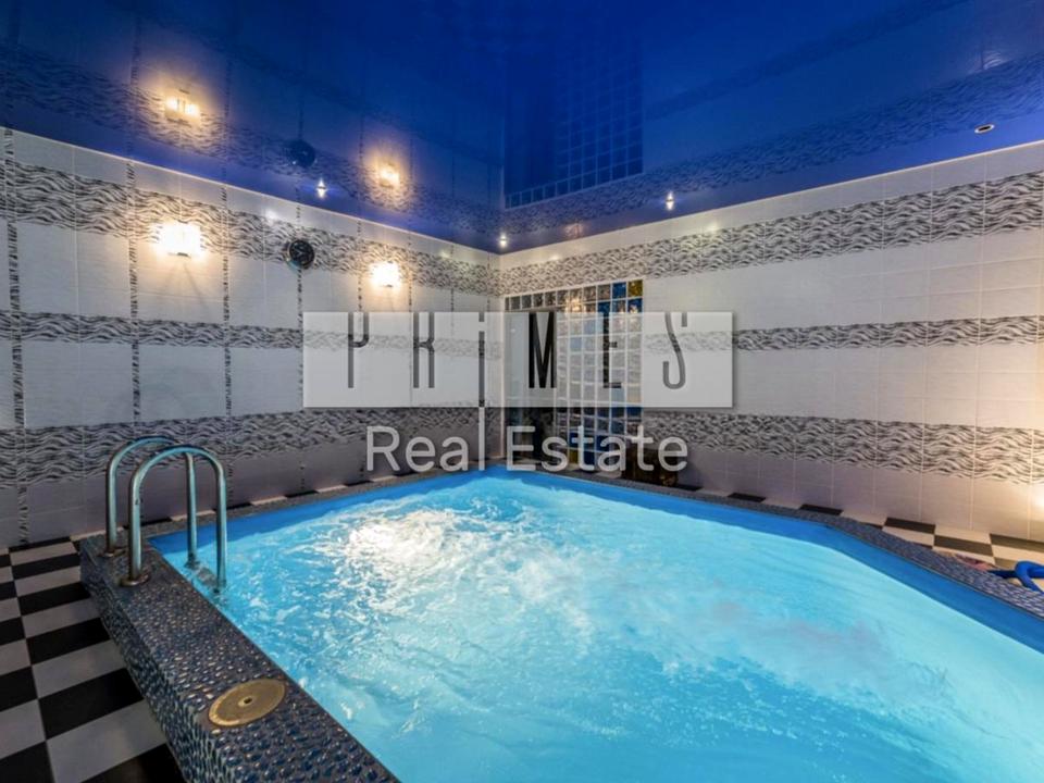 6 спалень, 3 сан.вузли, бассейн, сауна, більярдна, велика терасса, гараж, окремий будиночок для гостей та окремий мангальний будинок.