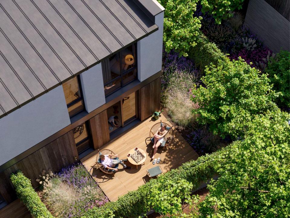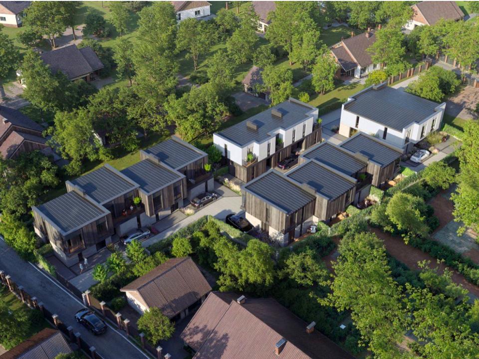 Продаж сучасних двоповерхових таунхаусів біля лісу та озера. Площа від 83.5 м², зручне та комфортне планування на два поверхи. Будинки збудовані з повнотілої цегли, мають лєнточний фундамент, утеплення пінопластом та односкатний дах, утеплений мінеральною ватою. Біля кожного будинку власна ділянка від однієї сотки і задній дворик для зони барбікю.
