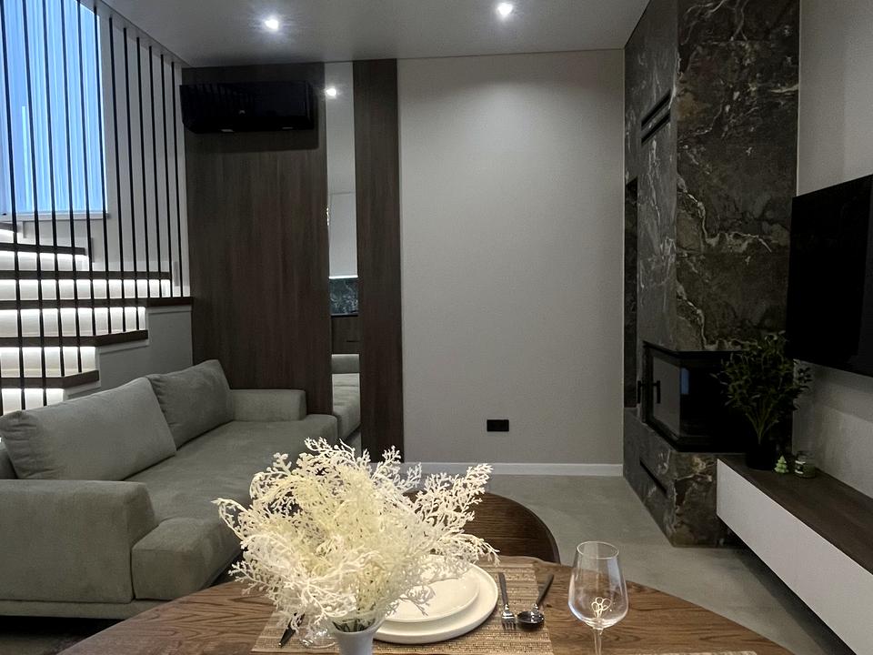 4 кімнати, 2 санвузли з душовою і ванною, великий підвал на 3 кімнати, кухня-вітальня з каміном і виходом на власну криту терасу. Місце для парковки на 3 авто.