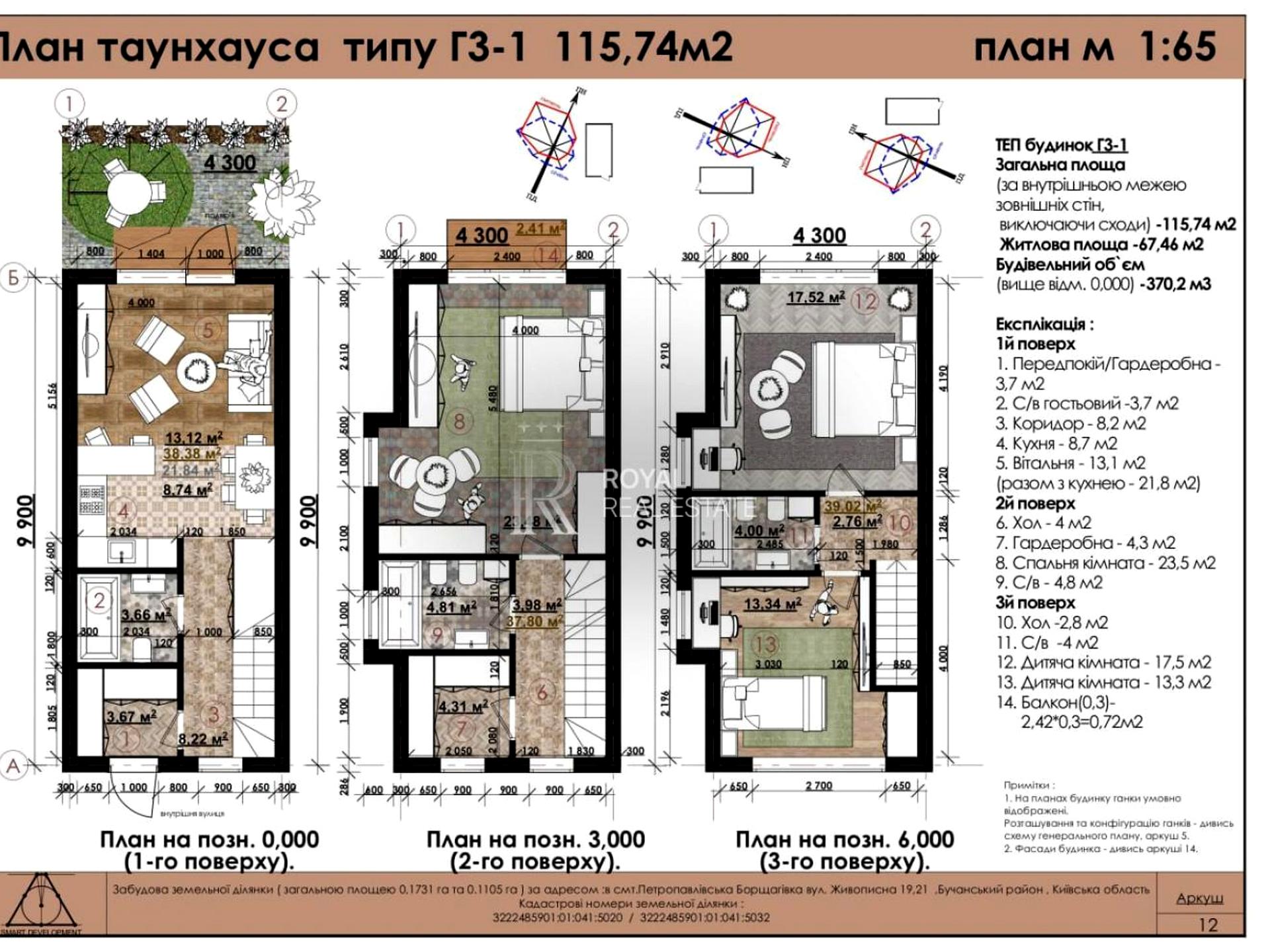 Таунхауси площею 116 м2 (№1 на геплані) - на три поверхи - вартість 121 800 дол