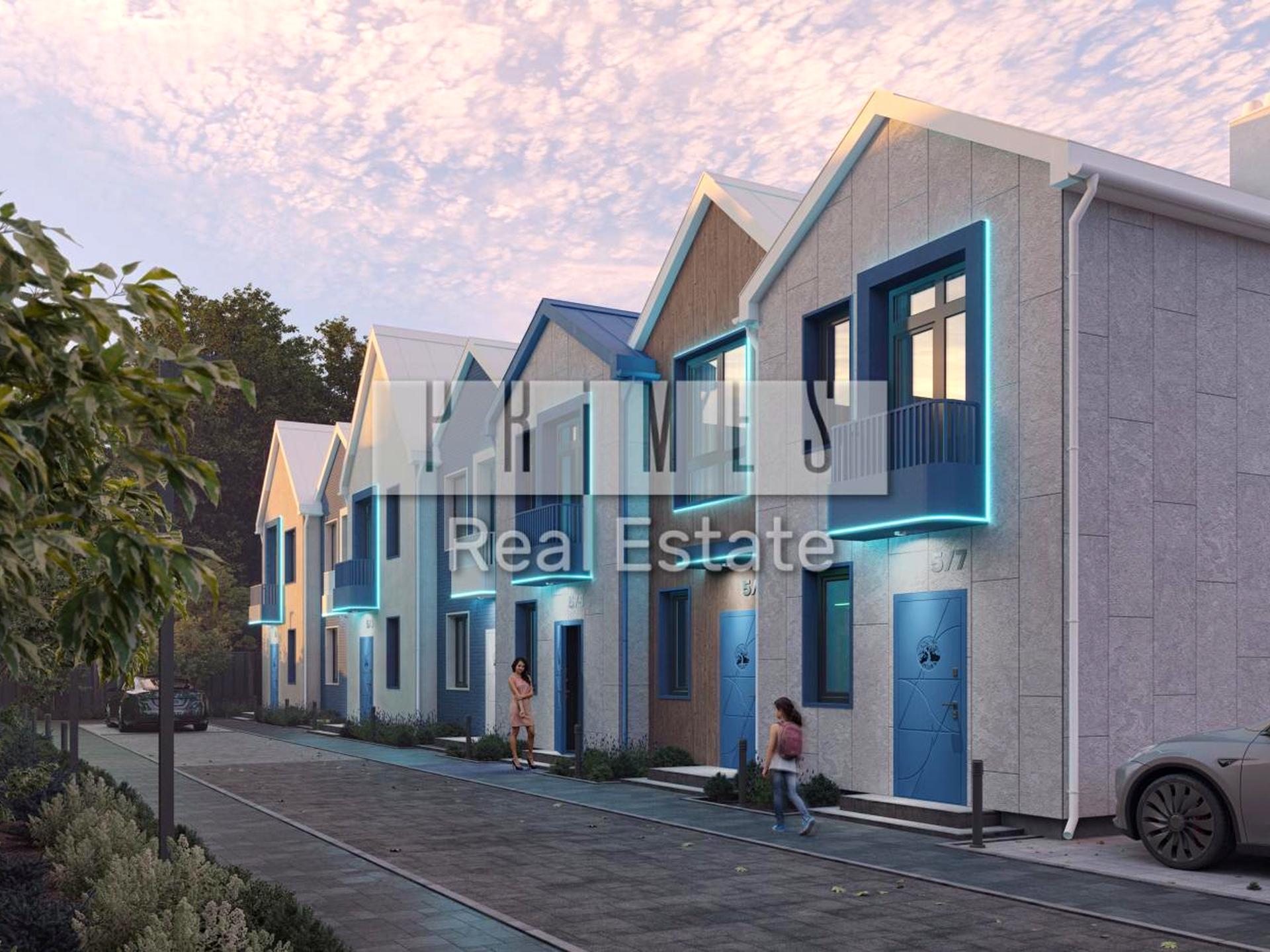 Житловий комплекс на 435 таунхаусів в 2 та 3 поверхи площею від 57 до 117 м2, з продуманими зонами відпочинку, рестораном, спортзалом та охороною.