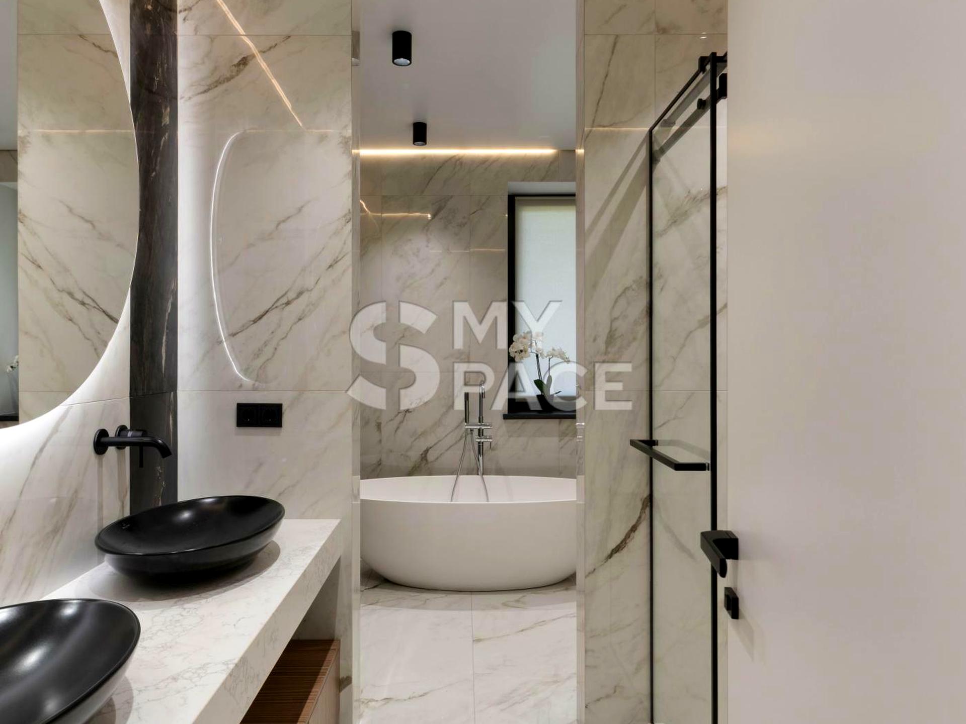 • Перший поверх: простора кухня, гостьова зона з панорамним видом та каміном. Окрема кімната з власним санвузлом та гардеробною