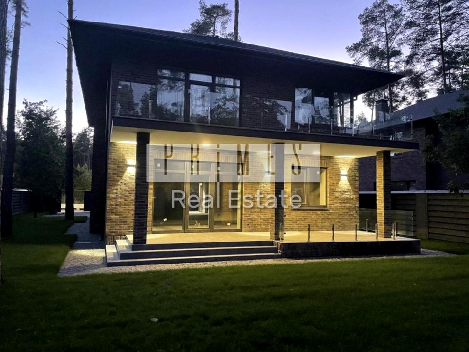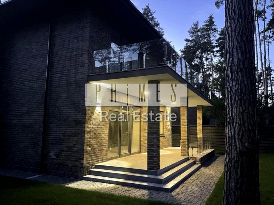 Будинок площею 250 м2 включає: 4 спальні, велика вітальня з каміном, кухня / їдальня зі своїм виходом на літню криту терасу першого поверху, кабінет, три санвузли, 2 гардеробні кімнати, а також велика тераса з виходом з господарської майстер спальні.