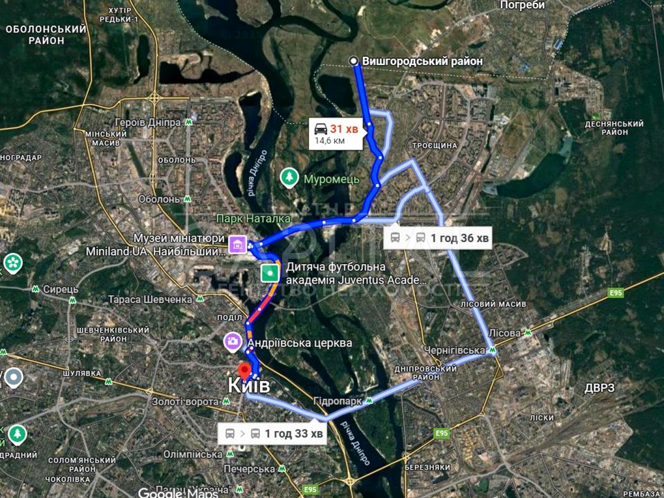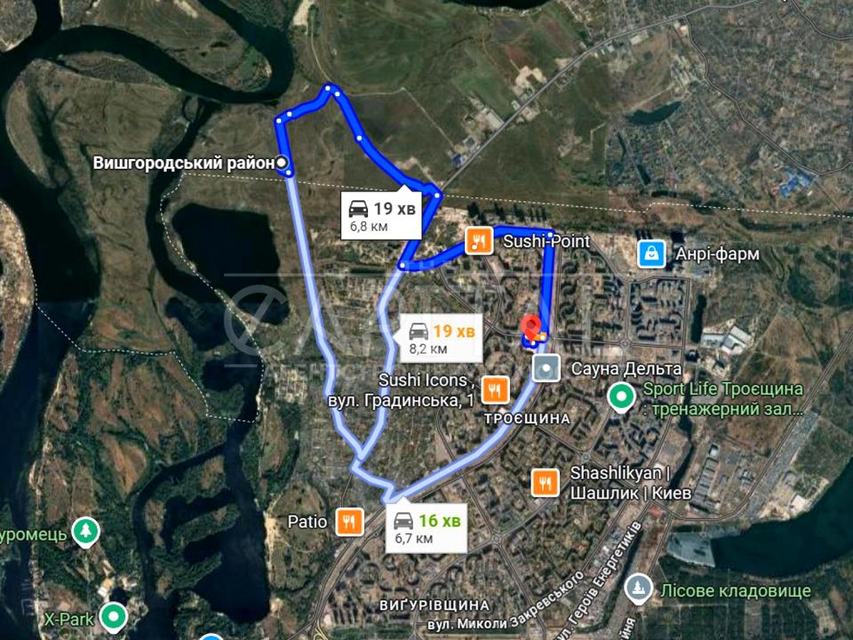 • Фактично на межі міста Київ, 5–7 хвилин до Троєщини