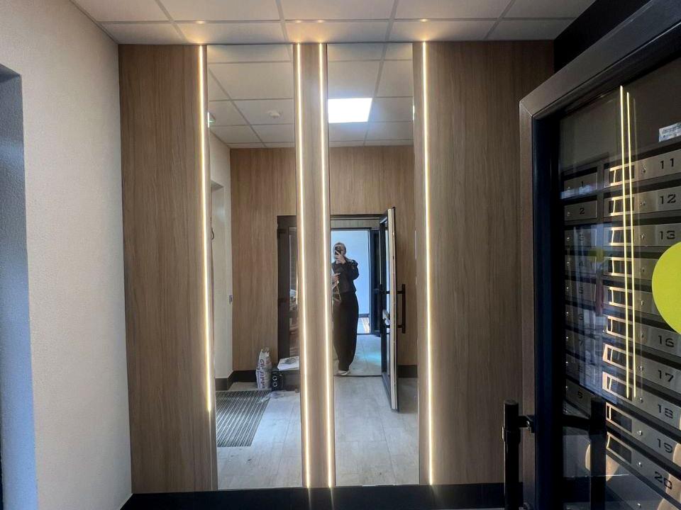 Вхідні двері (обшиті МДФ), 0-й цикл, штукатурка, всі лічильники, зашклені лоджії та тераси, підвали.