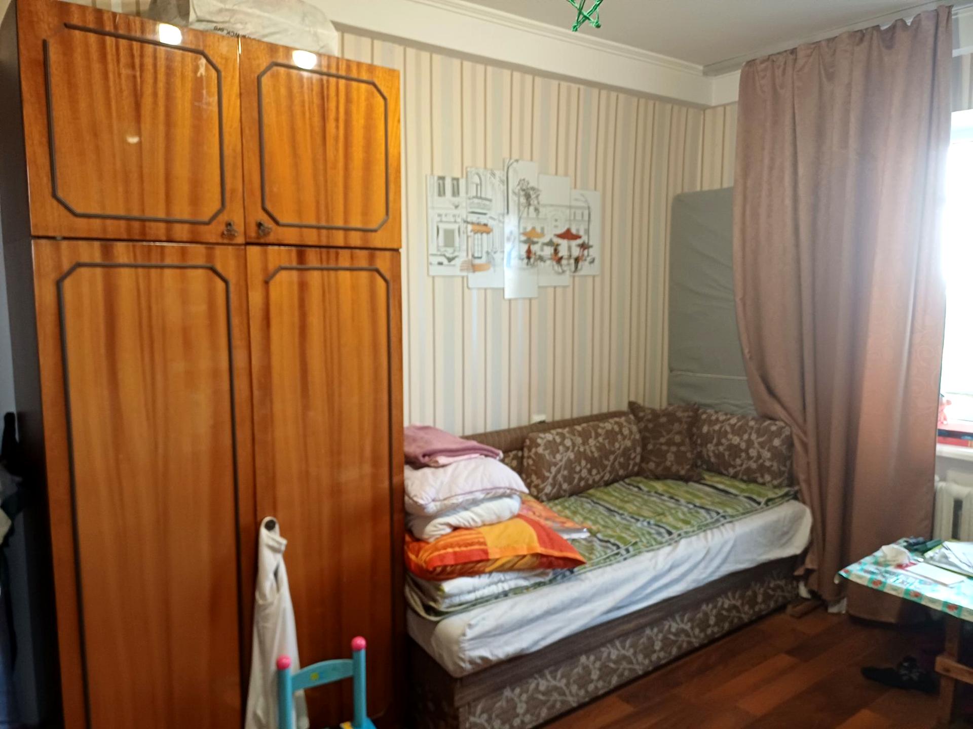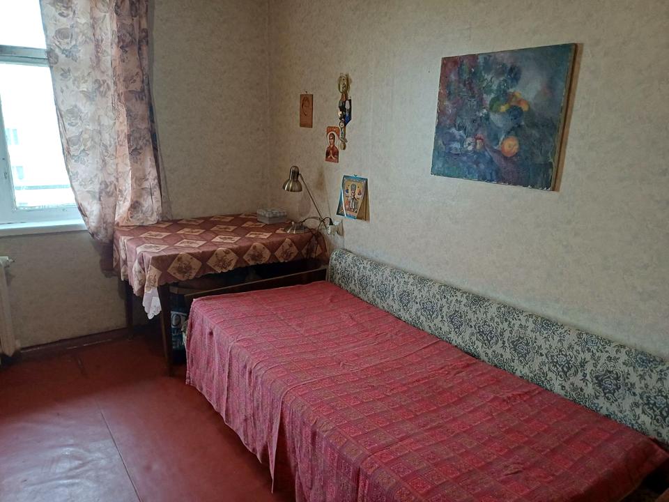 Комната в 3-комнатной квартире, Отдельная квартира. Дом - Типовая панель, высота потолков 2.6 метра. В комнате 1 окно, Вид из окна во двор. Комната Изолированная, Квартира стандартная. Есть газ, кухонная плита газовая. Горячая вода - централизованная. Отопление центральное. Раздельный санузел, туалет/ванна. Сантехника в нормальном состоянии. Проведены металлопластиковые трубы, новые. Входная дверь бронированная. Покрытие полов - линолеум. Есть балкон. Окна в нормальном состоянии. Межкомнатные двери в нормальном состоянии. В комнате есть Шкаф, Кровать. Дом построен в 1975 году. Общее состояние комнаты - Хорошее состояние. Рядом есть школа, детсад, остановки, супермаркет, парк, лес. Сантехника в нормальном состоянии. Новые. Комиссия за услуги 50 грн