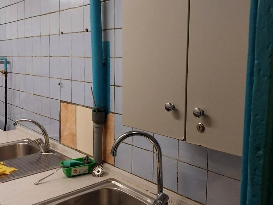 Велика кухня загального користування, душові на поверсі. Туалет на три кімнати, зачиняється.