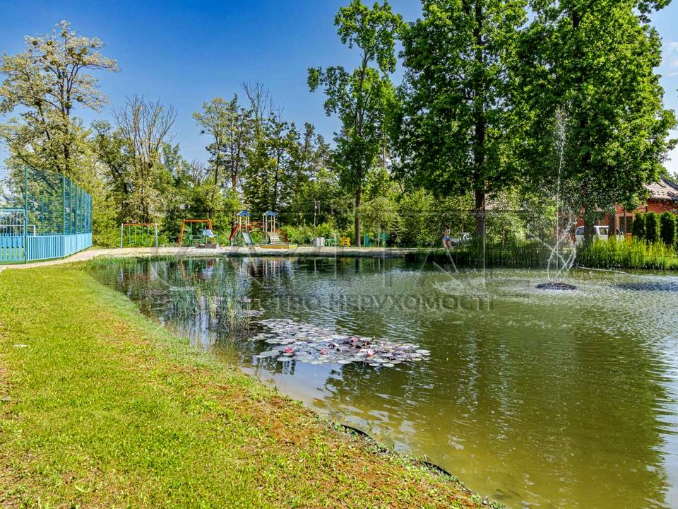На території є ставок і дитячий майданчик.