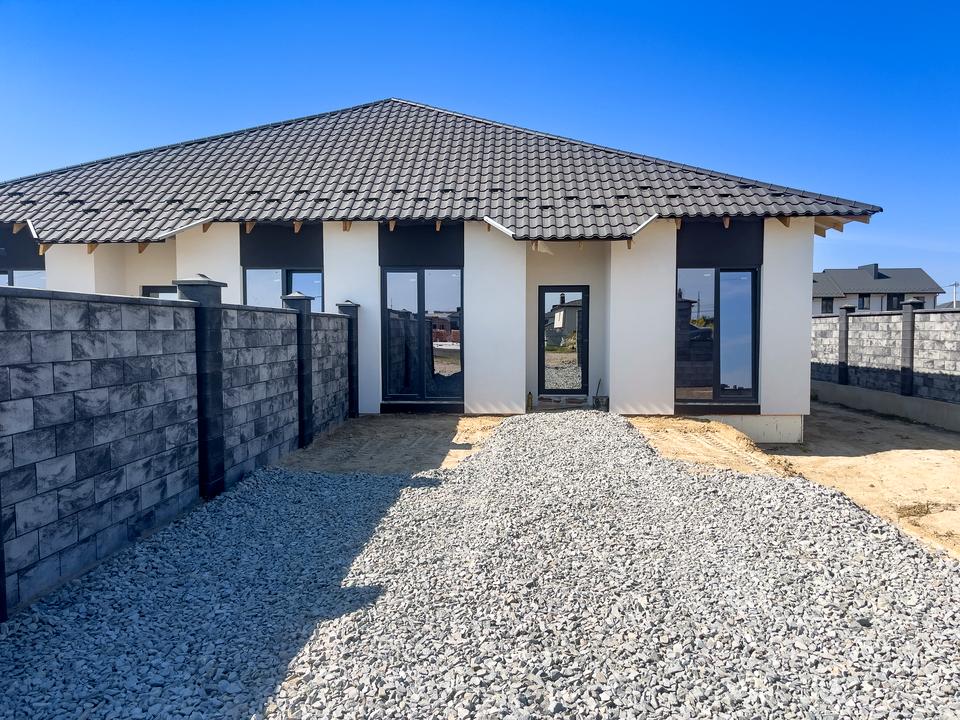 Дуплекс, 1 этаж, 4 комнаты. Материал стен – кирпичный, фундамент дома – железобетон, материал перекрытий – дерево. Площадь участка 5 соток. Высота потолков 3.2 метра. Планировка комнат Смежно-раздельная. Холодная вода - скважина, горячей воды нет. Отопления нет. Совместный санузел. Подогрева полов нет. В доме нет балконов. Тип кухни - кухня-студия. Окна металлопластиковые, новые. Покрытие крыши - металлочерепица. Есть ограждение. Своя канализация. Общее состояние дома - С ремонтом. Без комиссии