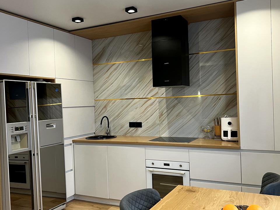 • Повністю вмонтована техніка: пральна та сушильна машина, посудомийка, холодильник, телевізор
