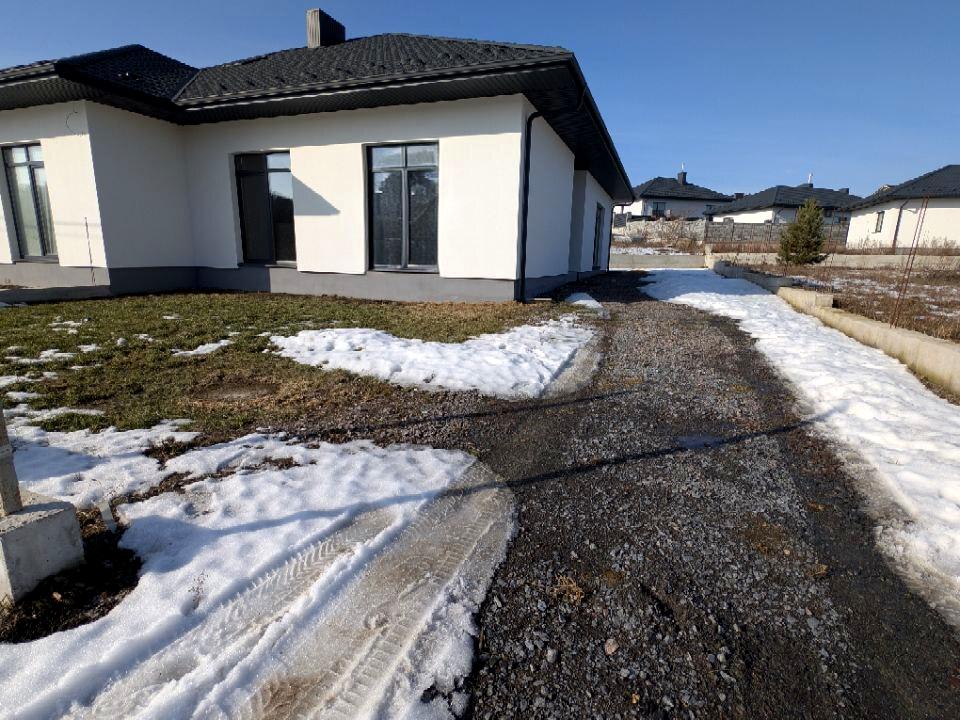 Пропонується сучасний одноповерховий котедж у спокійному масиві приватної забудови. Зручне розташування - до міста кілька хвилин, заселена вулиця, асфальтований доїзд.
