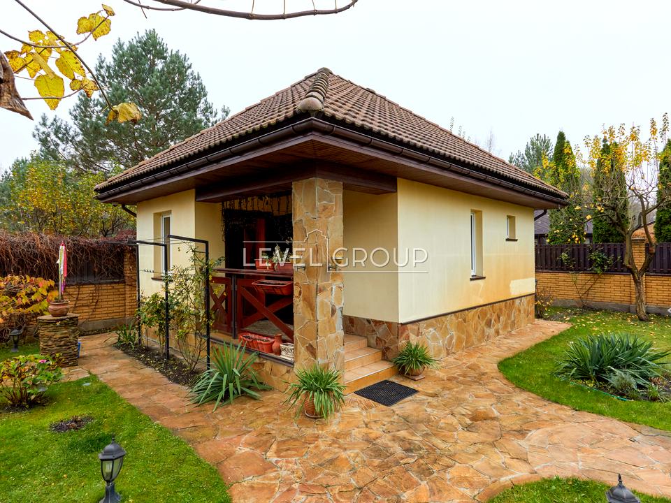 Пропонується до продажу будинок з ремонтом, на власній ділянці 10 соток з озелененою територією. Є гараж та додаткове паркомісце під накриттям, альтанка з зона барбекю та баня.