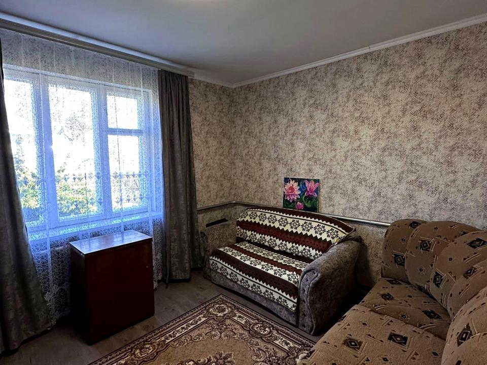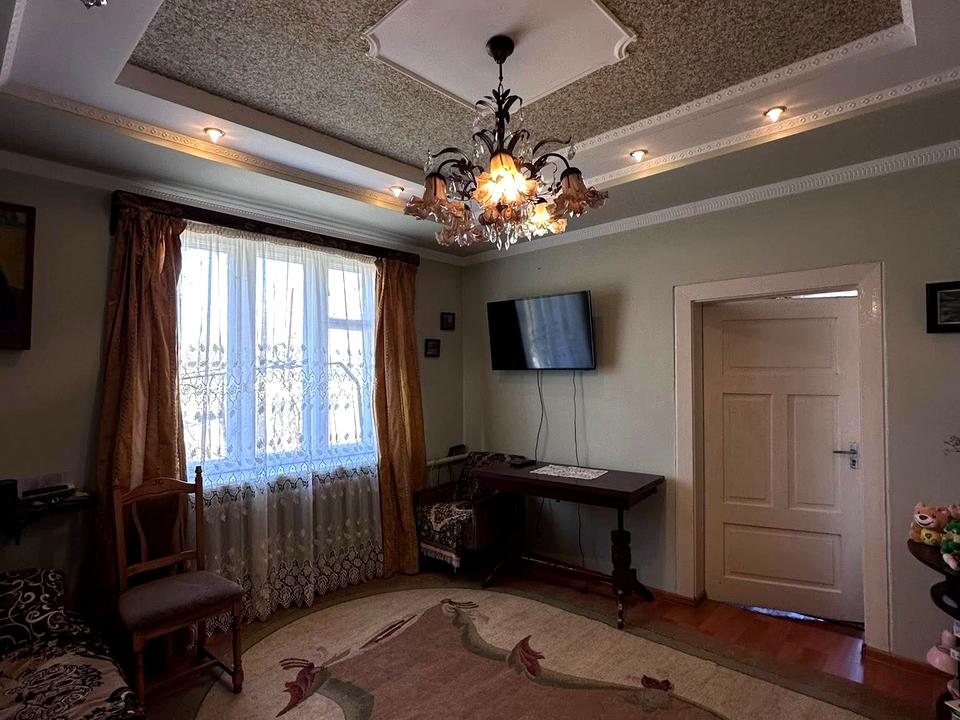 Дом, 1 этаж, 4 комнаты. Фундамент дома – блоки. Подъезд к дому – асфальт. Площадь участка 9 соток. Высота потолков 2.5 метра. Покрытие полов: покрытие полов - дерево. Тип кухни - отдельная кухня. Есть подвал. В доме есть Телевизор, Кабельное ТВ, Стиральная машина, Ванна, Холодильник, Газон, Сад/огород, Гараж. Централизованная канализация. Общее состояние дома - Частичный ремонт. Газ природный. Холодная вода - водопровод. Горячая вода - газовый котел. Отопление котел газовый. Количество санузлов: 1. Покрытие крыши - черепица. Количество паркомест: 1. Кухонная плита газовая. Количество спален: 4. Комиссия за услуги 3 %
