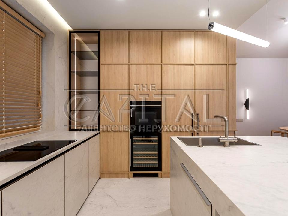 • Простора кухня-вітальня з панорамними вікнами, що створюють відчуття відкритого простору.
