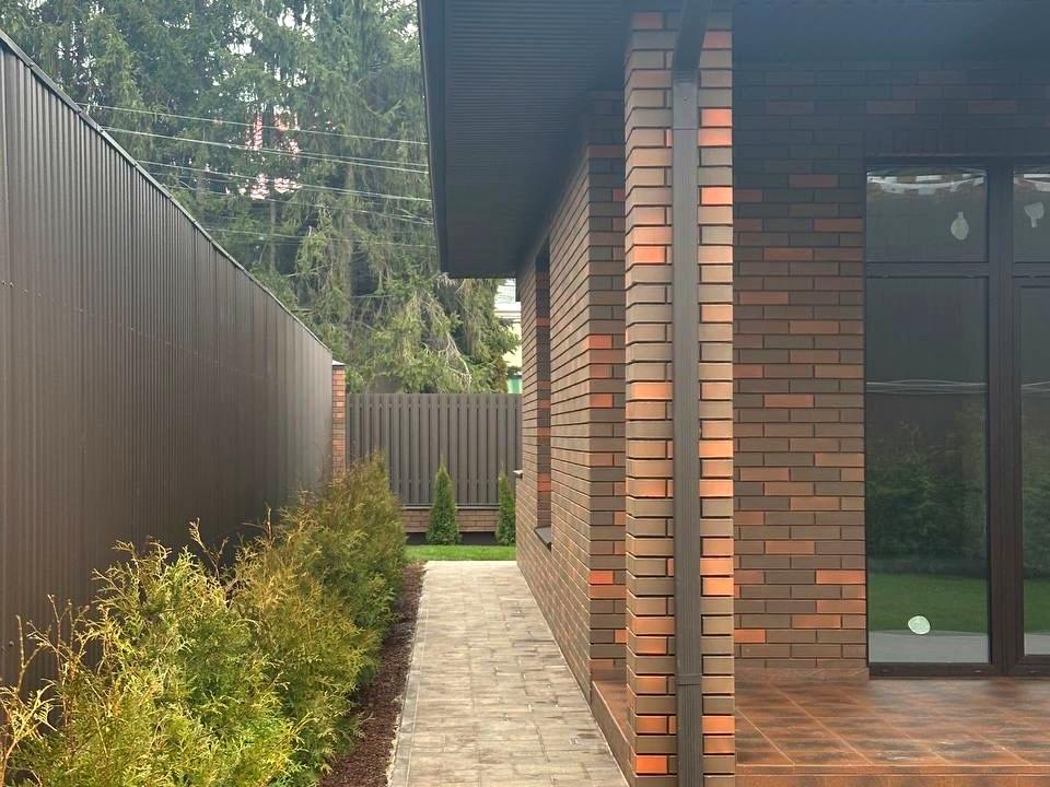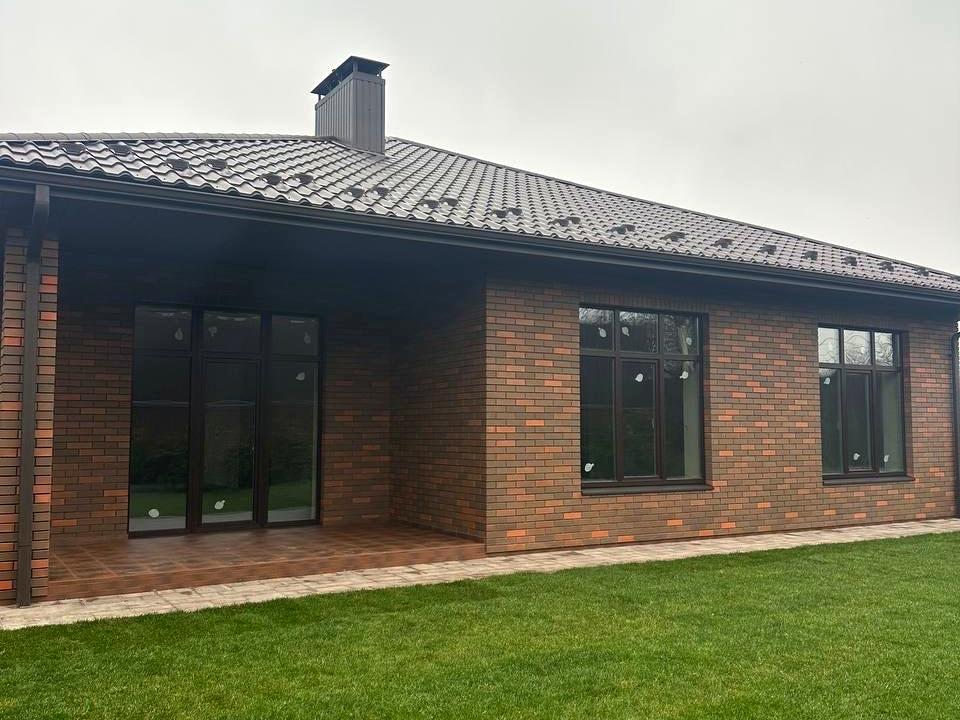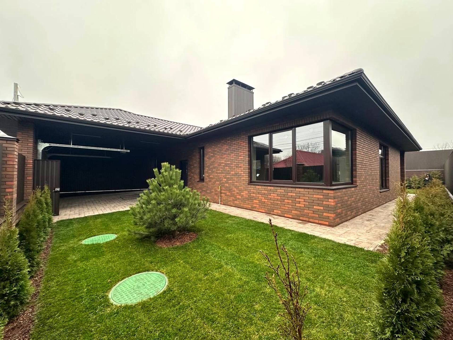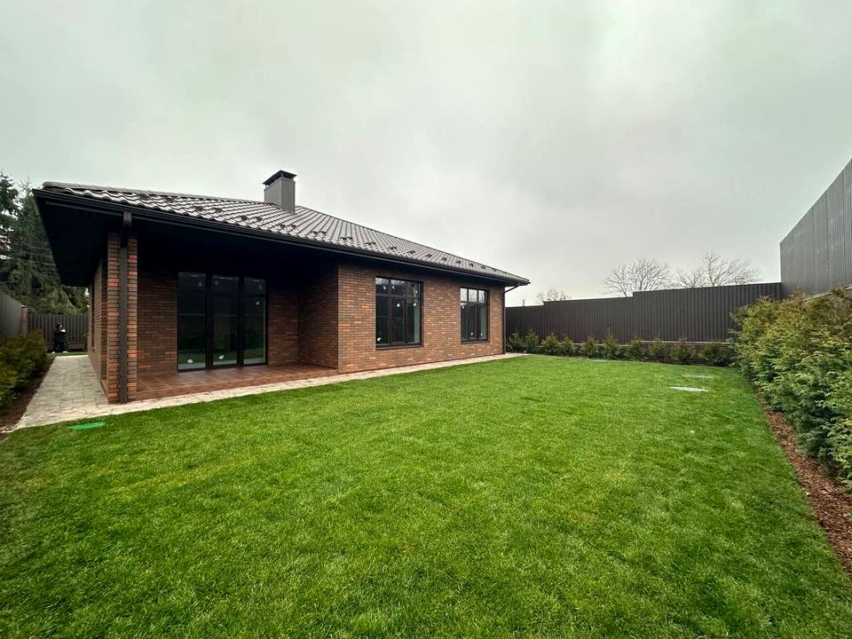 Пропонується цегляний будинок загальною площею 134 м² з автонанісом на два автомобілі та терасою площею 11 м². Ділянка — 5,37 сотки, доглянута, з газоном та автополивом.