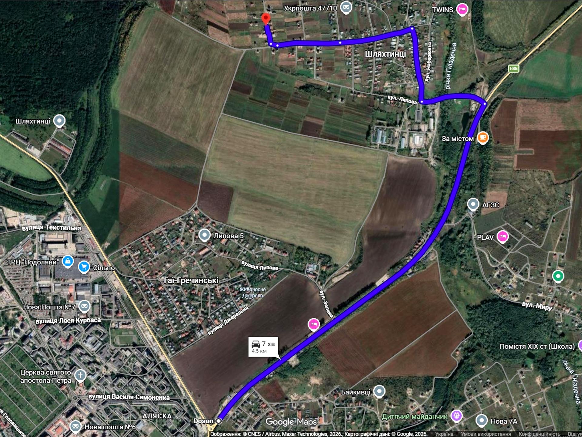 за 5 км до Тернополя село Шляхтинці, вул. Садова,