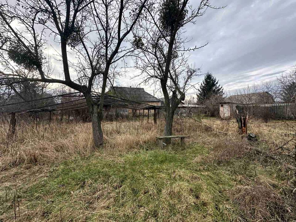 На ділянці капітальний гараж, старенький будинок (53.6/33.8/6), літня кухня з піччю, дровник, погреб, та хлів. В будинку 2 кімнати, (одна прохідна), приміщення під ванну, кухня та тамбур. Комунікації газовий напольний котел, свердловина на вхідну воду та септик, електрика 5 кВт. Підходить для тимчасового проживання.
