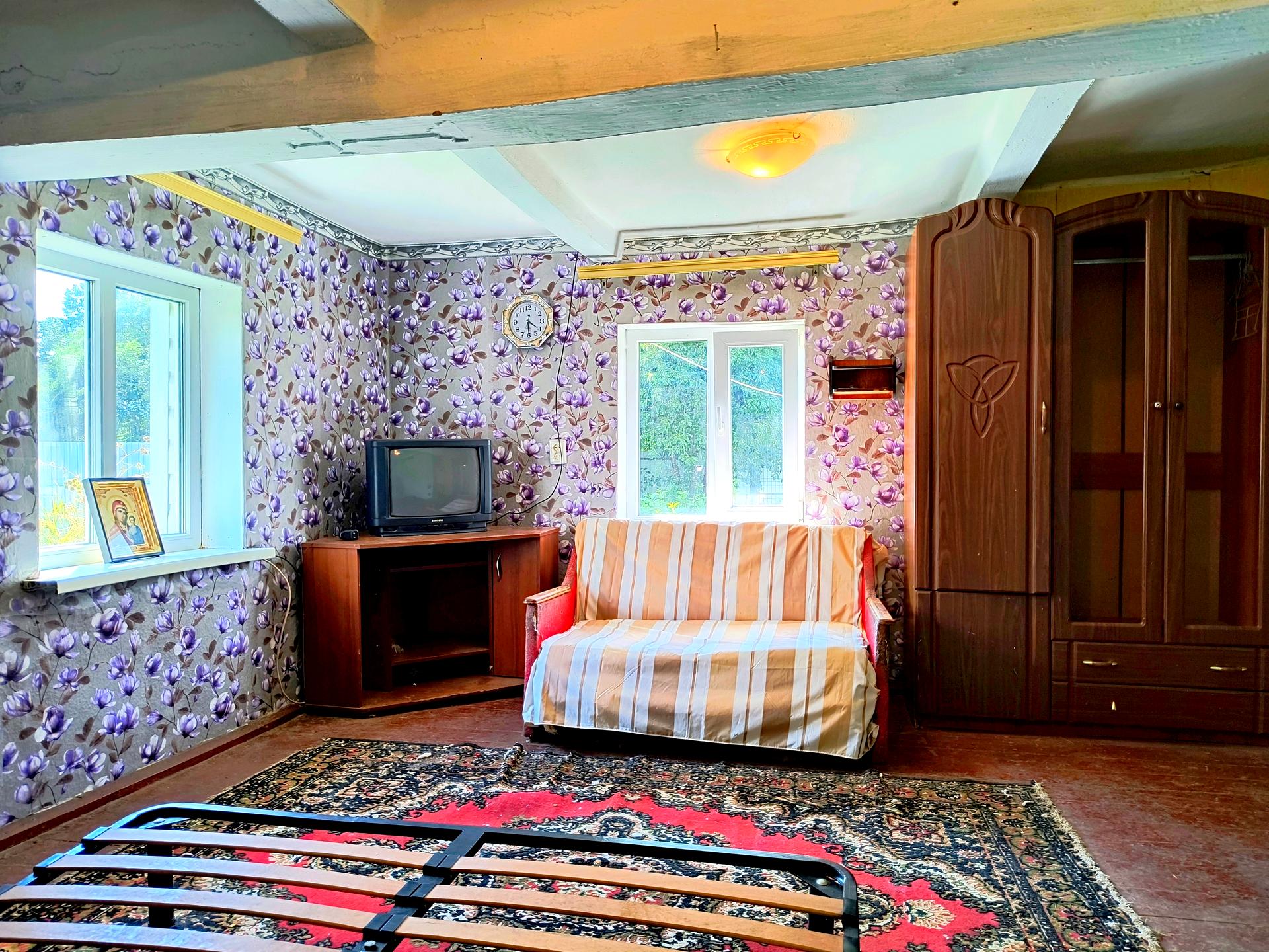 Дом, 1 этаж, 2 комнаты. Материал перекрытий – дерево. Подъезд к дому – грунт. Площадь участка 14 соток. Высота потолков 2.4 метра. Вид из окон во двор. Планировка комнат Раздельная. Газ на улице. Холодная вода - колодец, горячая вода - электрический бойлер. Отопление печное. Совместный санузел, туалет/душ. Сантехника в нормальном состоянии. Проведены. Входная дверь железная, нет лестницы. Покрытие полов - дерево, подогрева полов нет. В доме нет балконов. Окна металлопластиковые, новые. Покрытие крыши - шифер. Есть ограждение. Есть подвал. В доме есть Телевизор, Шкаф, Кровать, Стиральная машина, Счетчики, Душевая кабина. Дом построен в 1960 году. Своя канализация. На территории участка есть сад, огород. У дома 1 собственник. Общее состояние дома - Частичный ремонт. Возможность прописки. Рядом есть школа, детсад, остановки, речка/озеро, лес. Дом приватизирован. Прямая продажа, Свободна, Эксклюзивный договор. Сантехника в нормальном состоянии. Наружное утепление стен. Работает без света - отопление. Без комиссии