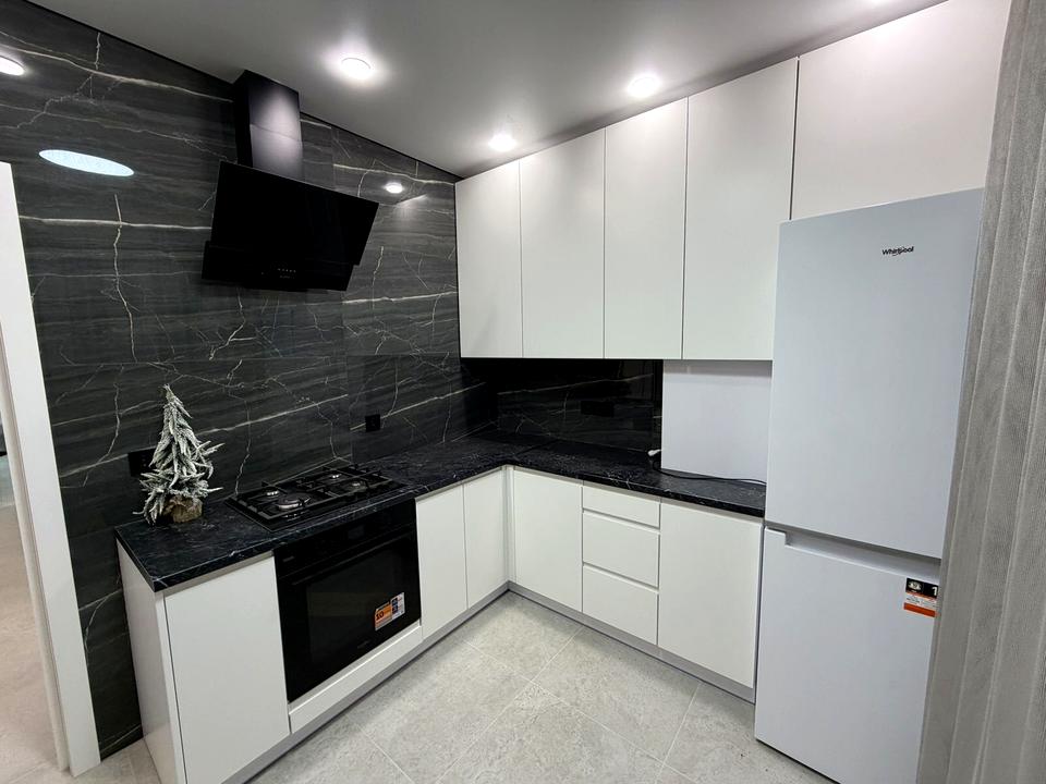 Санвузол суміжний з великим дзеркалом з підсвіткою, інсталчцією, сушаркою, тумбою з раковиною та ванною. У санвузлі також тепла підлога, що робить квартиру більш затишною.