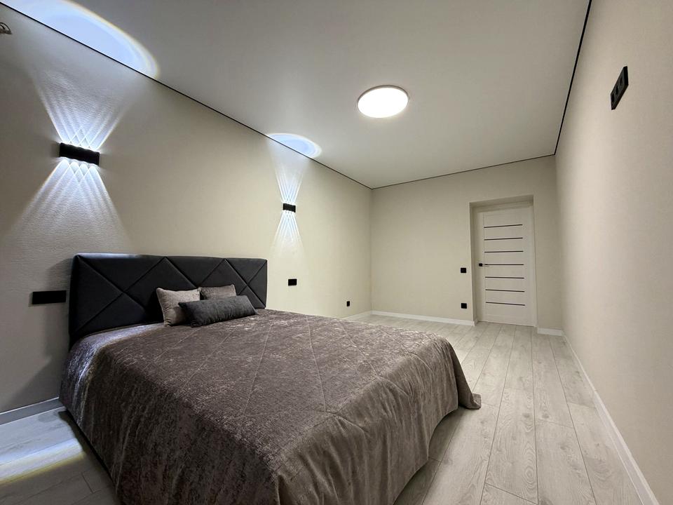 Спальня простора та вікна виходять у двір. Облаштована зручним двоспальним ліжком з матарсом.