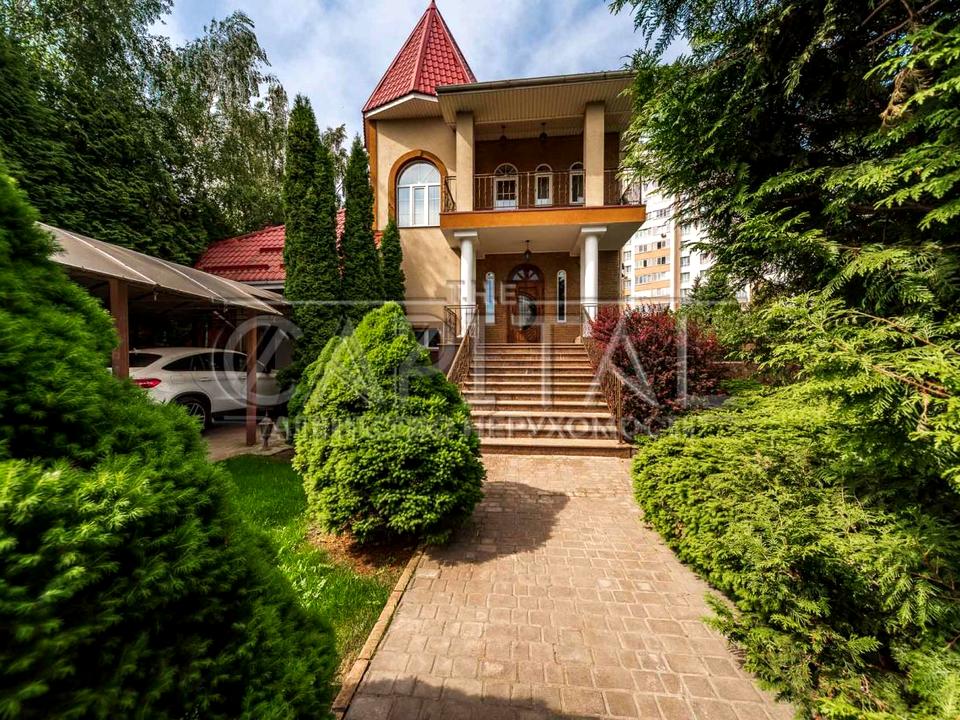 Авторський проект у поєднанні ландшафтного дизайну з використанням безлічі хвойних рослин. У проекті ділянки передбачені озеро та струмок, зона барбекю з діючим каміном. Підземний гараж із навісом для автомобілів. Будинок має гарних сусідів!
