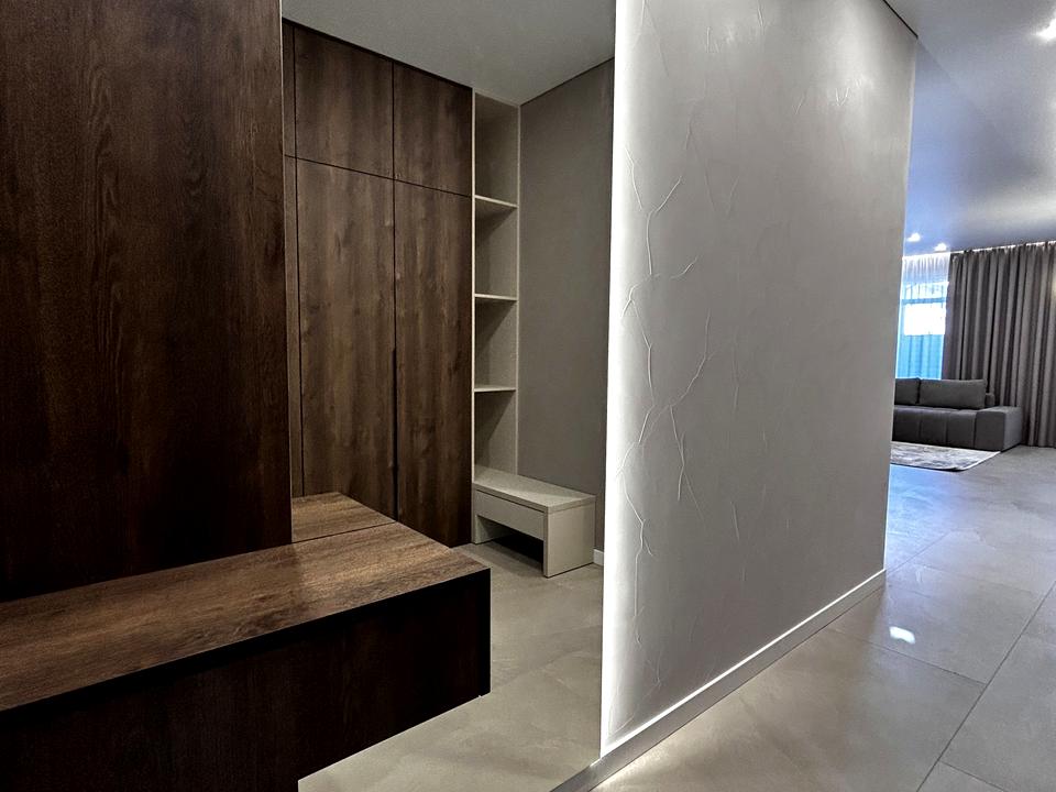 Інтер’єр виконаний у теплих, стильних відтінках, що створюють атмосферу затишку та комфорту.