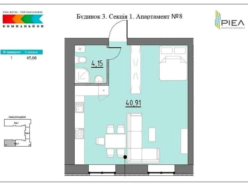 Площа: 45,15 м²