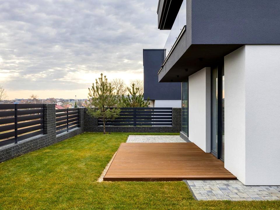 Будинок в 0-циклі, тобто ще без ремонту. Залита цементна стяжка на підлозі, поштукатурені стіни, встановлені алюмінієві вікна Reynaers, вхідні двері. Будинок зовні утеплений пінопластом 15 см. Фасадна, терасна дошки - термоясен.