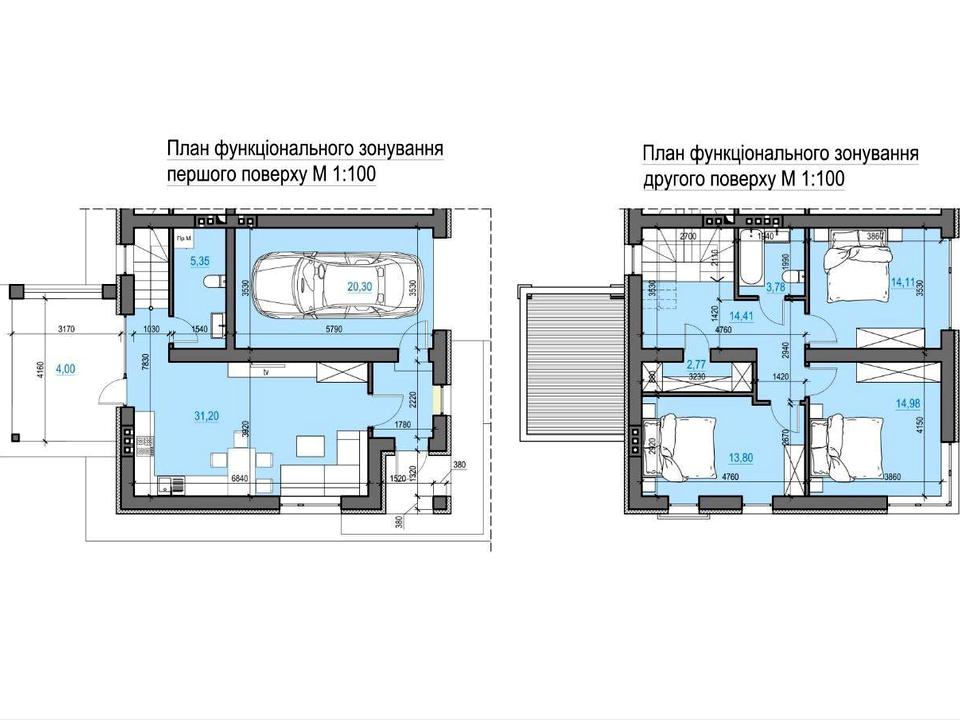 Другий поверх: три окремі спальні, гардероб, санвузол, балкон