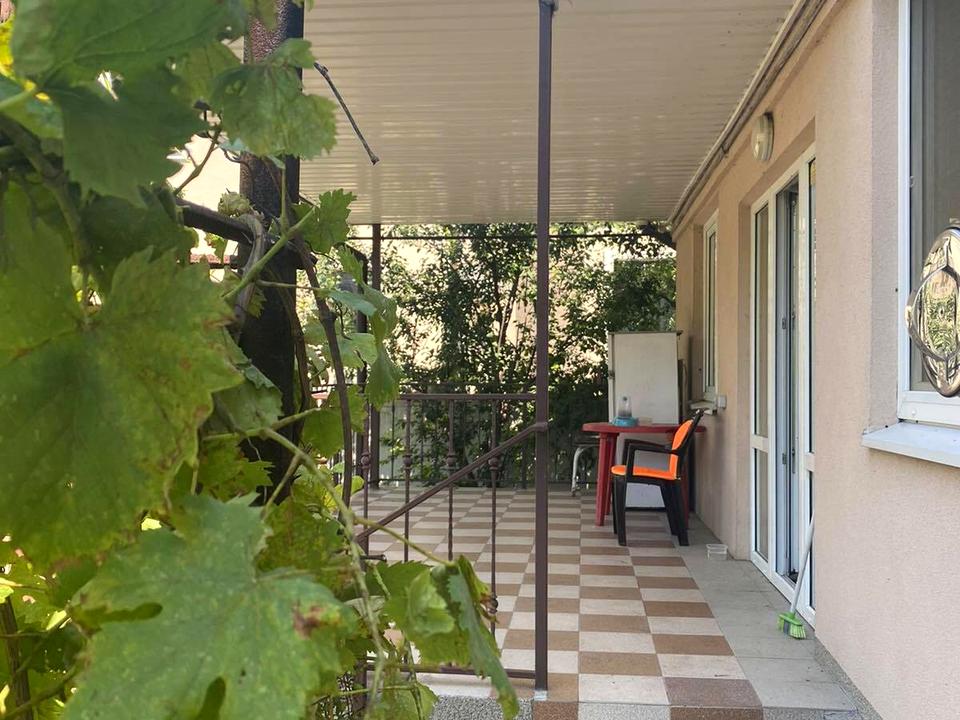 Ділянка 15 соток: фруктовий сад - сортовий виноград 6 видів, абрикоси, яблуні, вишні, черешні, алича, груші, сливи, хурма, айва. Навколо будинку доріжки, викладені тротуарною плиткою. Сигналізація, інтернет, відео спостереження, генератор. 800 дол. США на місяць + комунальні послуги.