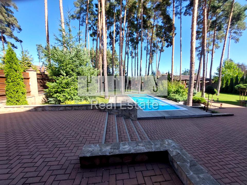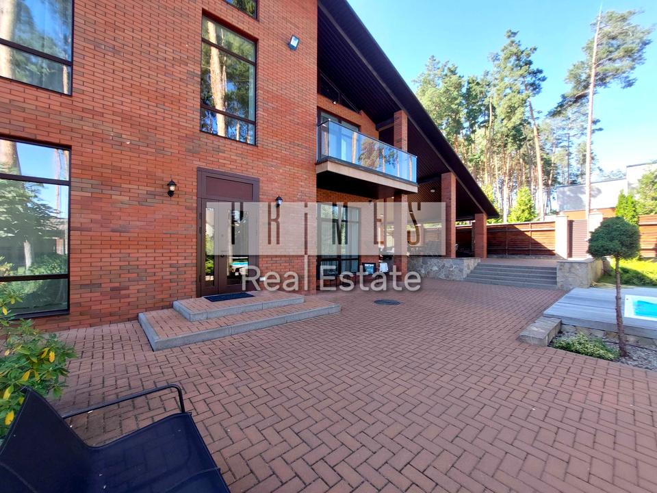 Пропонується сучасний двоповерховий будинок 250 кв.м, в 2-х кілометрах від Києва по Житомирській трасі у с. Стоянка. Ланшафтний дизайн ділянки 14 соток, автополив, басейн, лаунж зона з барбекю. Крита парковка на 4 авто. Будинок раціонально спланований: 1-й поверх- велика, простора кухня з островом, обладнана усією необхідною технікою. Гостинна кімната з діючим каміном, гостьова спальня, вбудованні шафи, великий с/вузол з душовою кабіною, побутова кімата (пральня), котельня, система очистки води, газовий котел. Зручні деревяні сходи з підсвіткою. 2-й поверх- велика спальна кімната з виходом на балкон, гардеробна та ванна кімната. Дитяча кімната, с/вузол з ванною. Тренажерна зона. В будинку багато великих вікон, світло та комфортно. Своя скважина, система глибокої очистки води, зоноване освітлення, тепла підлога, кондиціонери в кожній кімнаті, камери відеоспостереження. Будинок знаходться в мальовничому місці серед віковічних сосен - тиша, спокій та приватність цілий рік. Сусіди постійно проживають. В пішій доступності озеро, ліс. Найбільше Сільпо в області, заправка КЛО, Мак Дональдс, аптека, магазини, ресторан грузинської кухні - 5 хвилин. До м. Академмістечо 7-10 хвилин. Є відео.