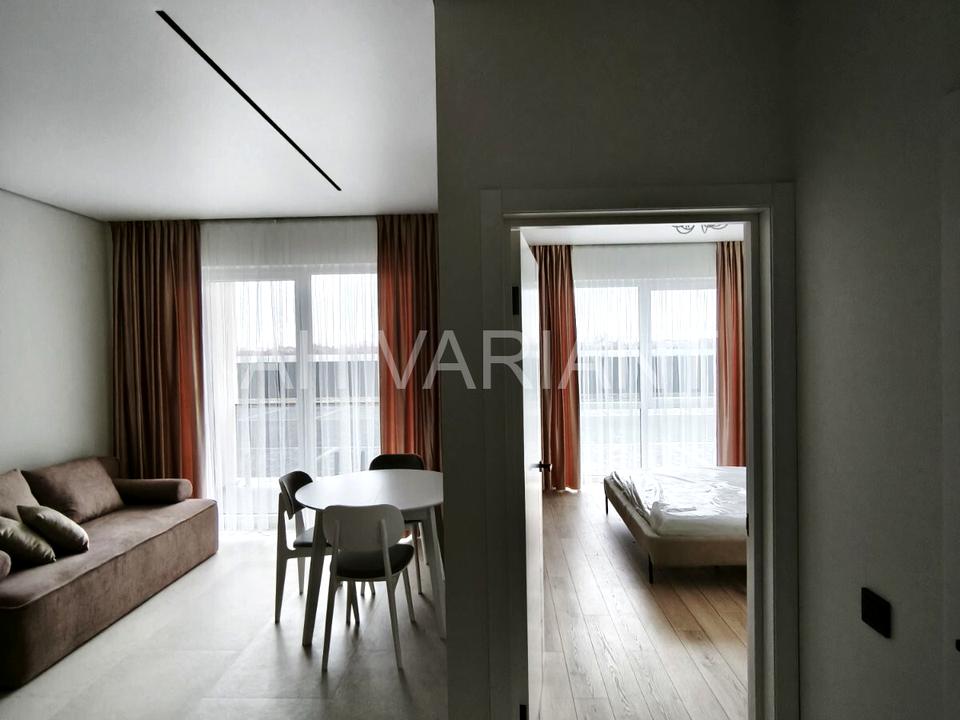 До вашої уваги пропонуємо квартиру площею 40.5 м.кв на першому поверсі, з виглядом на котеджне містечко.