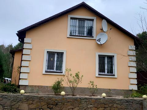 Будинок Стовп"яги вул. Супутницька 42 СТ "Супутник" 70/45/20 урочищє «Чубуки» Затишний будинок на березі Дніпра. Сосновий ліс. Окремо збудована сауна і побутові приміщення. Чудове озеленення і ландшафний дизайн. Продається з меблями і усією побутовою технікою. Повністю готовий до заселення. Опалювання - твердопаливний котел. Вода свердловина. Автономна каналізація. Є генератор. Будинок двоповерховий, цегляний, утеплений. Комісія 5%.
