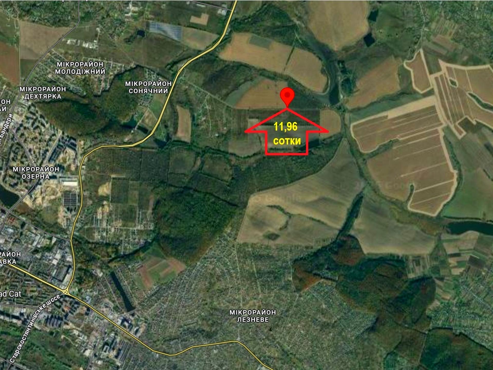 Масив "Європейський-2", вул.Яблунева 13. Від круга Темпа в сторону Старокостянтинова до 10 хв на авто 5.9 км.. Поряд забудувалося КМ Barcelona. Багато ділянок поділені.