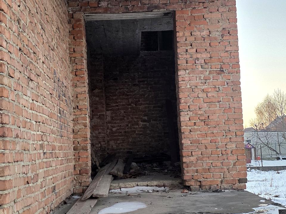 ​Будівля: міцна цегла, високий фундамент (10 \times 11 м), накритий шифером.