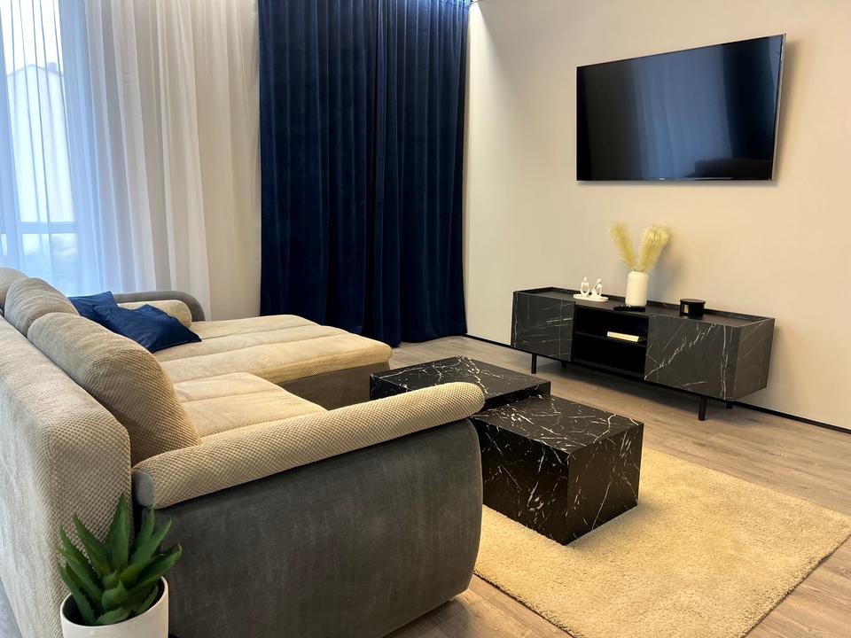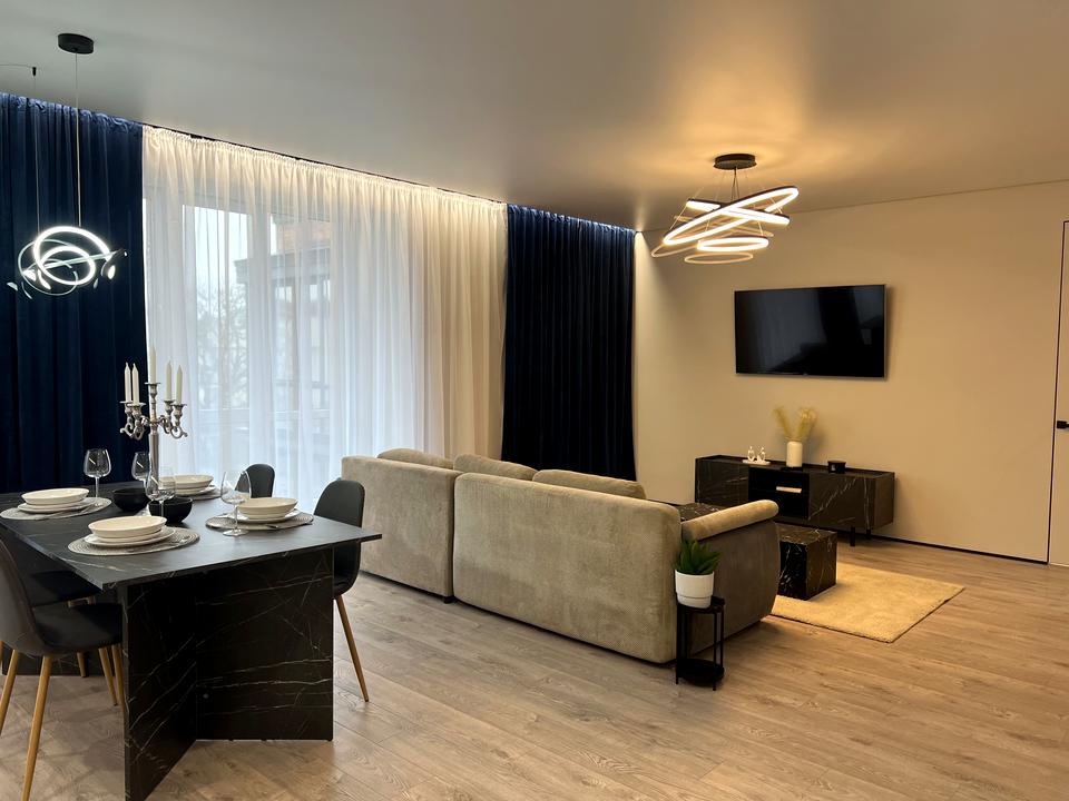 Оренда просторої квартири в новобудові ЖК "Джентельмен парк". Перша здача, новий сучасний ремонт, наяні меблі та побутова тенка. Дві окремі кімнати та кухня вітальня, гардеробні, два санвузла, меблі доставлять за потребами орендаря, є посуд та столові прибори. В будинку працює ліфт, на першому поверсі є супермаркет, поряд центр міста та інше. За деталями та для огляду телефонуйте.