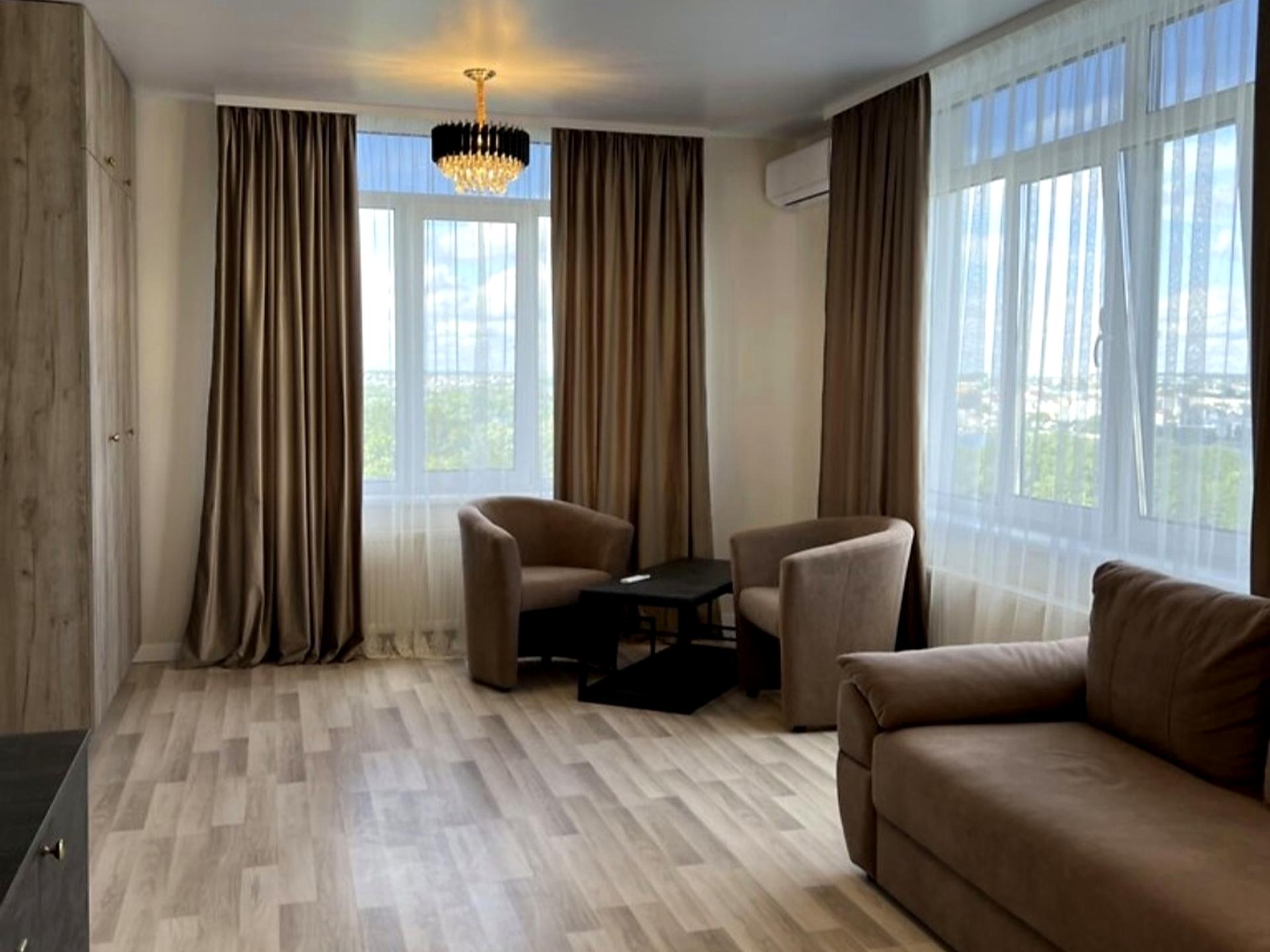 В квартире 1 комната, Тип будинку - Спец. проект. Кухонная плита электрическая. В квартире есть Телевизор. Дом построен в 2021 году. Общее состояние квартиры - С ремонтом. Количество санузлов: 1. Тип кухни - кухня-студия. Количество спален: 1. Комиссия за услуги 100 %