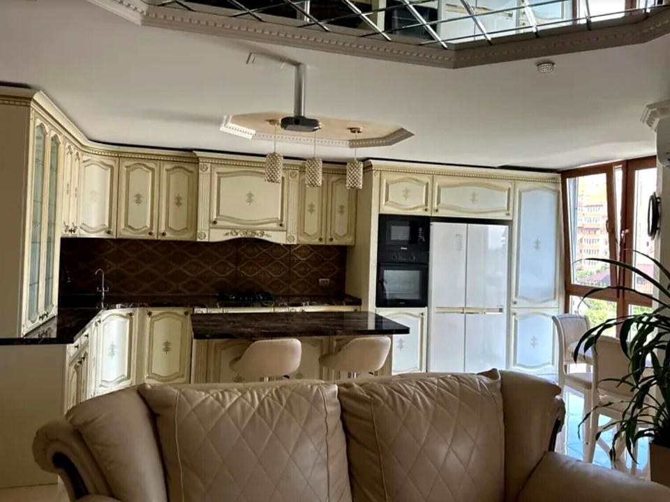 Загальна площа 92 кв.м. Квартира дворівнева, гарне планування, просторі кімнати. Зроблено якісний ремонт, мармурові сходи з кованими бильцями, камін. При продажі залишаються меблі та техніка. Два санвузли.