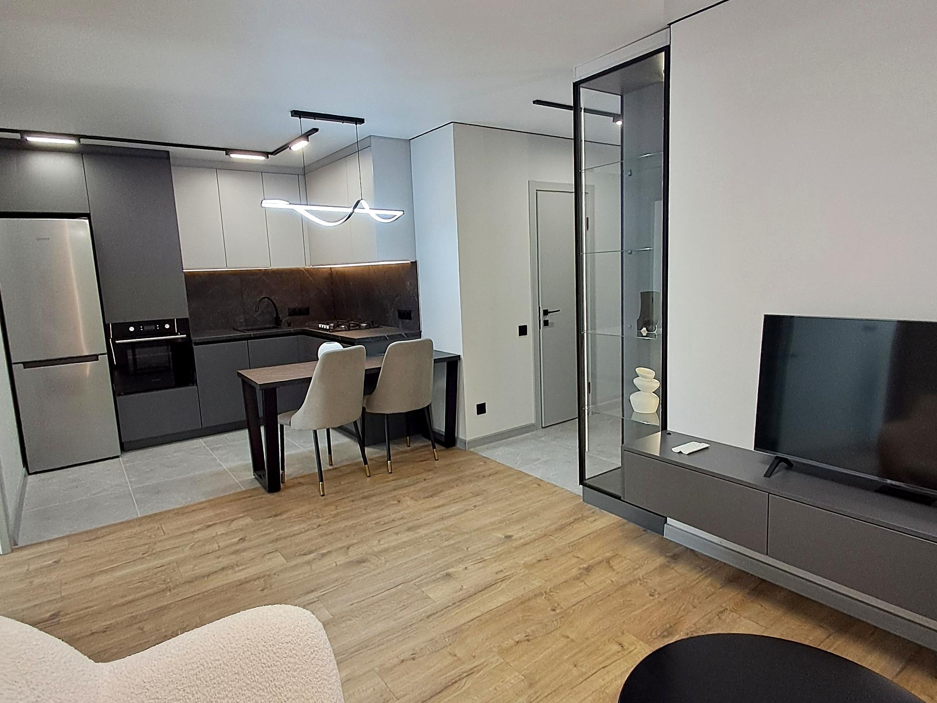 В квартире 2 комнаты, высота потолков 2.55 метра, Тип будинку - Спец. проект. Есть газ, кухонная плита газовая. Есть балкон. В квартире есть Подогрев полов, Стиральная машина, Ванна, Холодильник. Дом построен в 2021 году. Общее состояние квартиры - С ремонтом. Горячая вода - газовый котел. Количество санузлов: 1. Интернет проводной (кабельный). Владелец соглашается продать по программе єОселя. Работает без света - вода, газ, интернет. Владелец соглашается продать по программе єВідновлення. Тип кухни - кухня-студия. Количество спален: 2. Комиссия за услуги 3 %