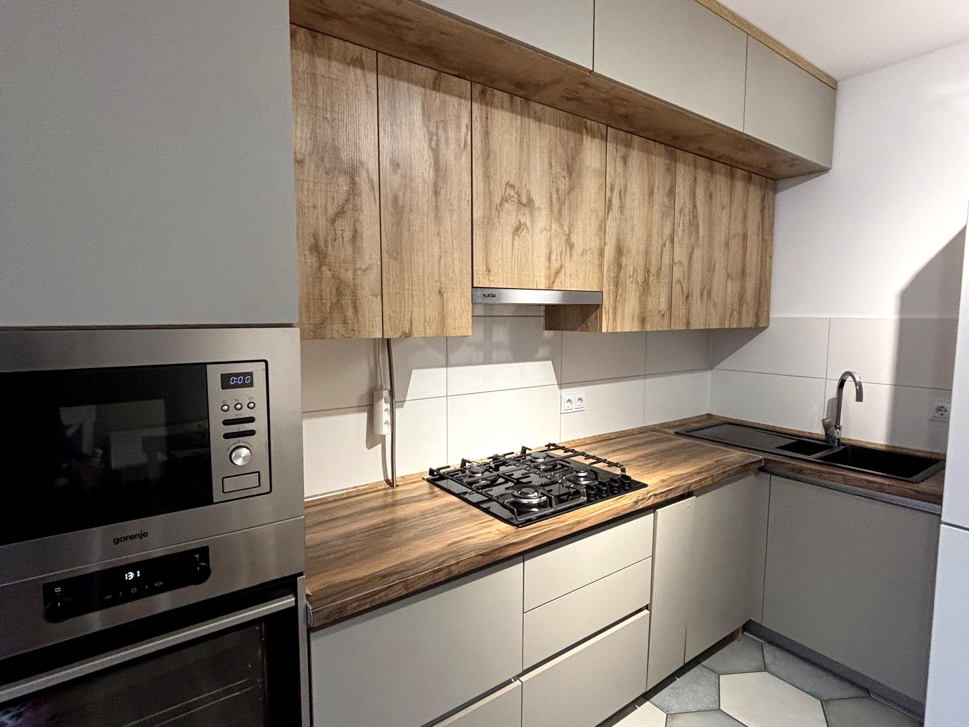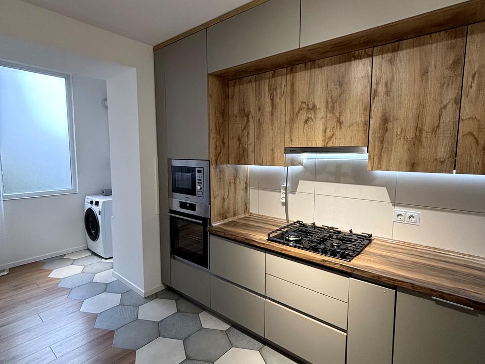 Є вмонтована посудомийна машина, духова шафа і мікрохвильова піч.