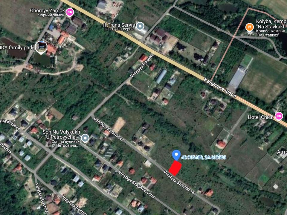 Під'їзд: траса - Калуське шосе => грунтова дорога підсипана гравієм - вул. Лісова, Струмкова.