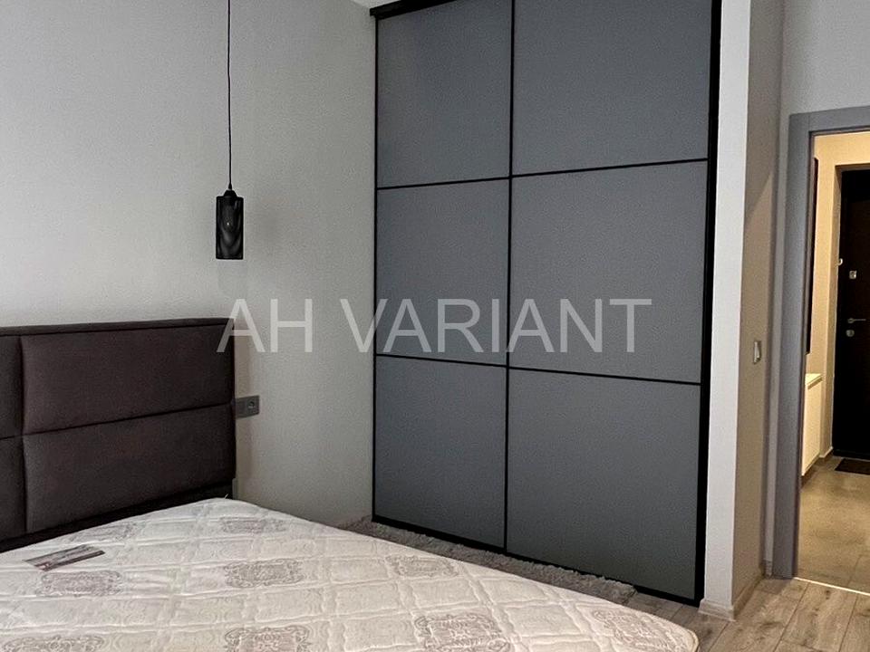 Зручне планування: коридор наповнений шафами, суміжний санвузол, кухня-студія з розкладним диванчиком, окремо кімната з ліжком та робочим столом, гардеробна.