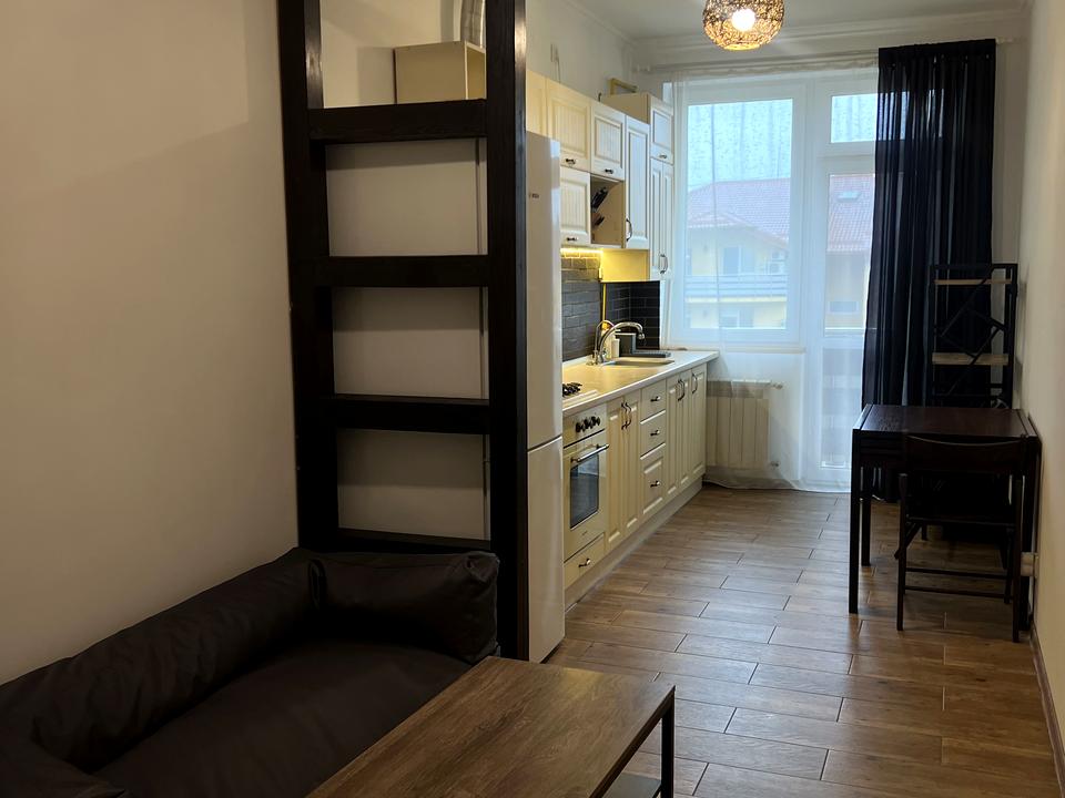 В квартире 1 комната, Технологія будівництва - Цегляна, Тип будинку - Спец. проект. Вид из окон во двор. Планировка комнат Смежная. Есть газ, кухонная плита газовая. Горячая вода - газовый котел. Отопление индивидуальное - . Совместный санузел, туалет/ванна. Есть балкон. В квартире есть Телевизор, Кабельное ТВ, Утюг, Кондиционер, Стиральная машина, Ванна, Холодильник, Посуда. Дом построен в 2017 году. Общее состояние квартиры - С ремонтом. Рядом есть школа, детсад, остановки, развлекательные заведения, супермаркет, парк, речка/озеро. Покрытие пола: ламинат. Интернет оптоволоконный. Работает без света - вода, газ, интернет. Комиссия за услуги 225 $