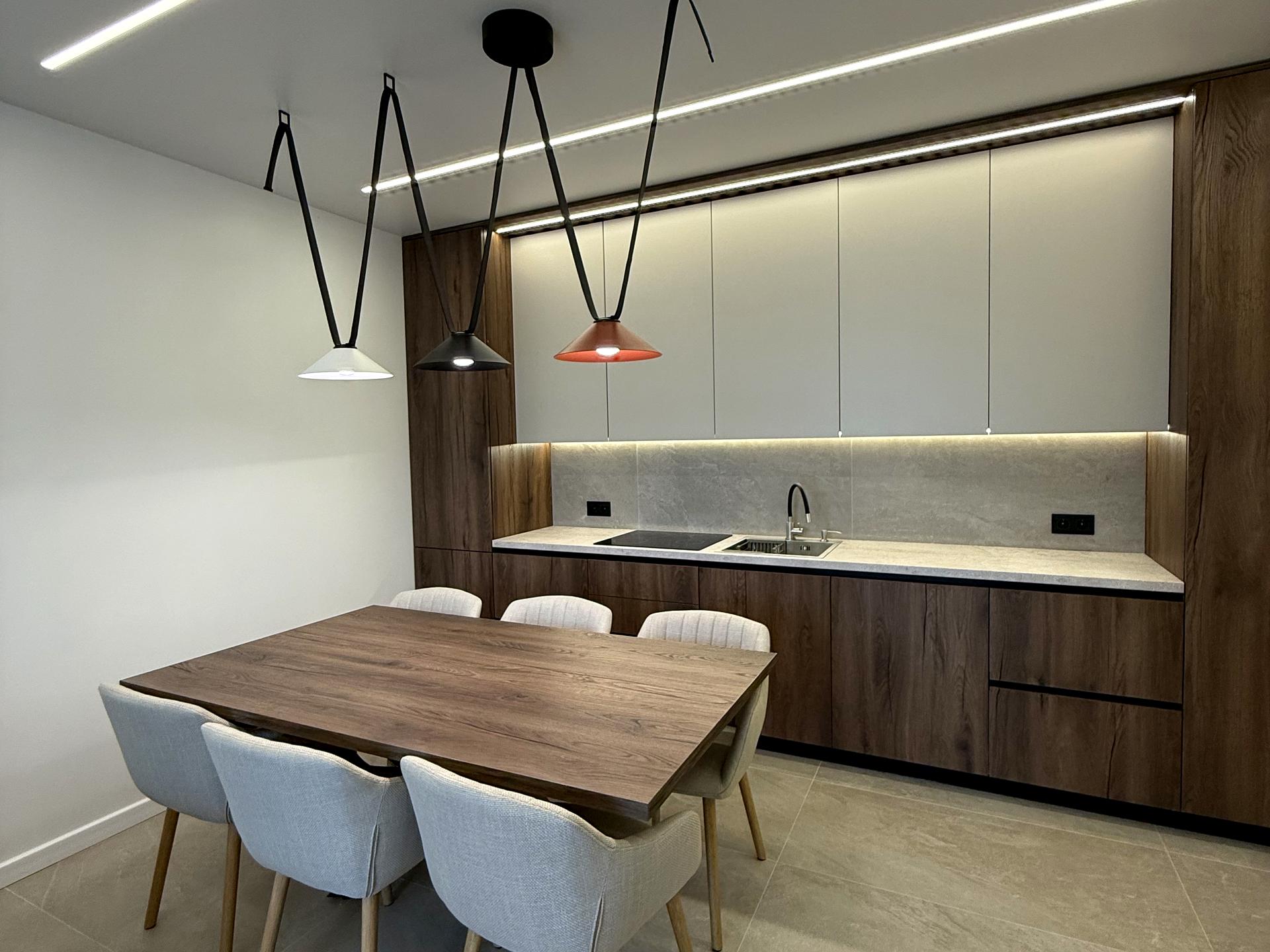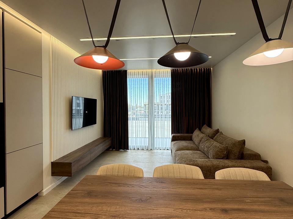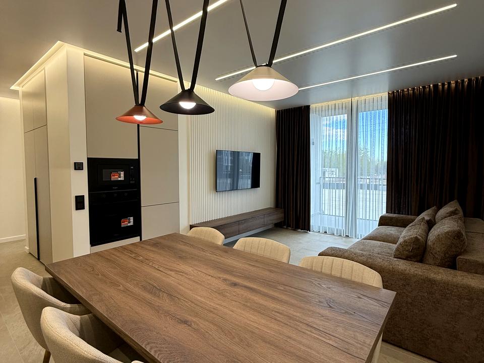 Квартира з якісним дизайнерським ремонтом, виконана в сучасному мінімалістичному стилі. Продумане планування, багато вбудованих шаф, теплі відтінки дерева, стильне освітлення та повна комплектація створюють дуже приємну атмосферу для життя.