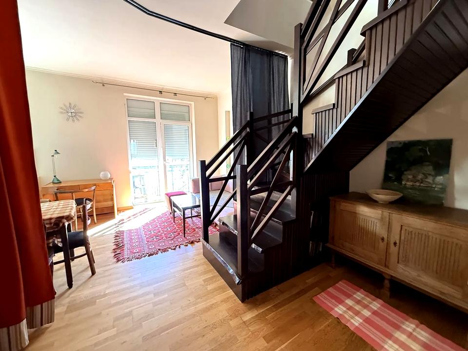 Пропонується в оренду простора двоярусна квартира з особливим характером та затишною атмосферою.