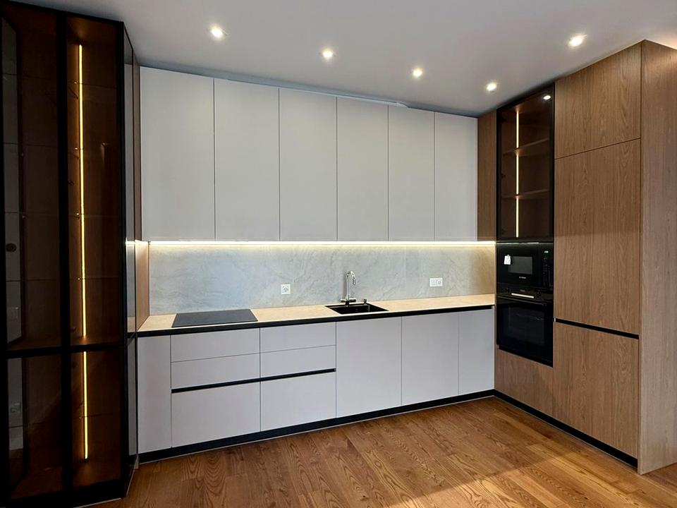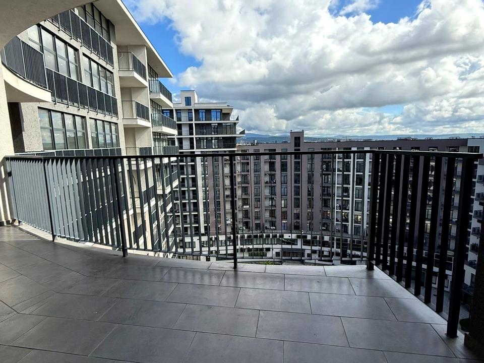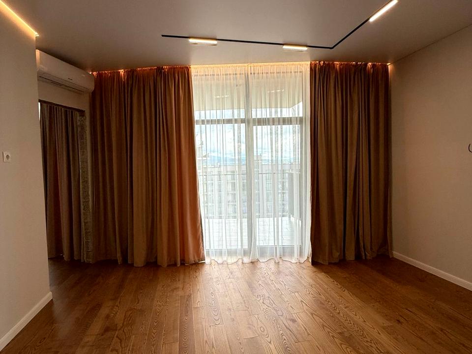 В квартирі дуже зручне планування: 2 окремі спальні кімнати, гардеробна, велика кухня студія з виходом на терасу. Сан вузол з ванною. Зроблено якісний, дизайнерський ремонт. Кухня та меблі в спальні робились під замовлення. Двері прихованого монтажу, підігрів підлоги, кондиціонери.