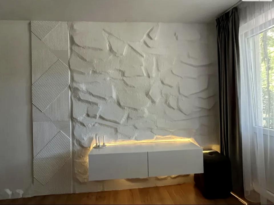 Стильний інтер’єр у світлих тонах, продумане зонування, комфортні меблі та сучасне освітлення створюють приємну атмосферу затишку.